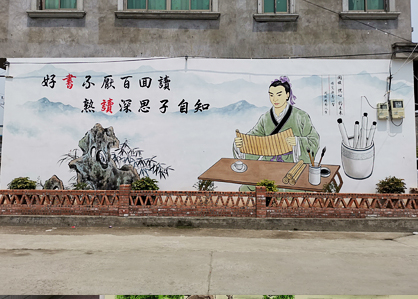 溫州市墨客墻繪藝術有限公司主要從事有個性有創(chuàng)意的家居裝飾墻繪、幼兒園卡通彩繪、KTV酒吧主題墻繪、3D立體墻繪、習哥彭姐文化大革命的城鄉(xiāng)文化宣傳墻繪等,當然還有我們獨歩武林的高墻墻繪藝術!畫高墻有時一個頭像就有兩米,不僅僅是大了型不好把握,一般習慣在陸地作戰(zhàn)的繪畫者往往上去后會讓你唱起一首歌:“三月里的小雨,淅瀝瀝瀝......瀝瀝……淅瀝瀝瀝下個不停……”就是戴上尿不濕,他們也會在上面演示帕金森。我們施工時下面觀看的人如少女初戀般心跳,欣賞的人似紂王品酒觀妲己跳舞一樣陶醉。連村中惡犬也為我們搖尾吶喊:“……墨客墻繪……神勇無畏!